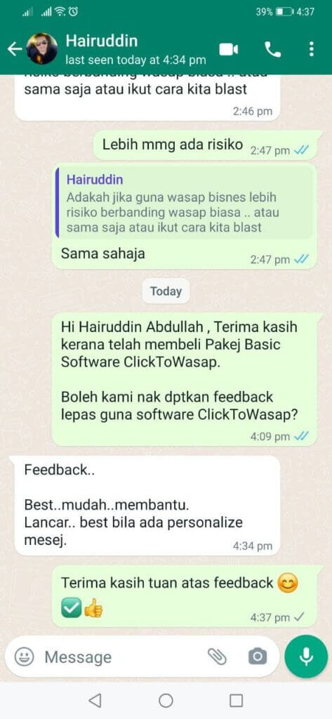 “Bagus Dan Mudah Digunakan. Of Course Sales Meningkat Selepas Gunakan KlikToWasap !”